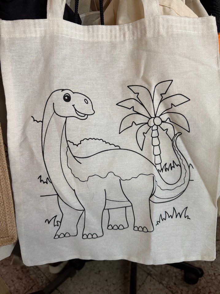 Kumaş üzerinde dinozor baskılı, fermuarlı kadın çantası. Camel ve gri renklerle sade, bohem tarzda günlük kullanıma uygun. Ham bez çanta farklı desenlerde de çalışma yapılabilir