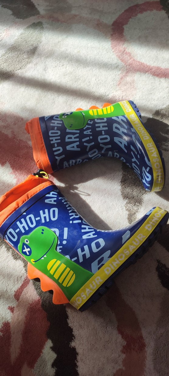 Dinozor baskılı erkek çocuk yağmur çizmesi, sadece 2 kez kullanılmıştır Denokids marka