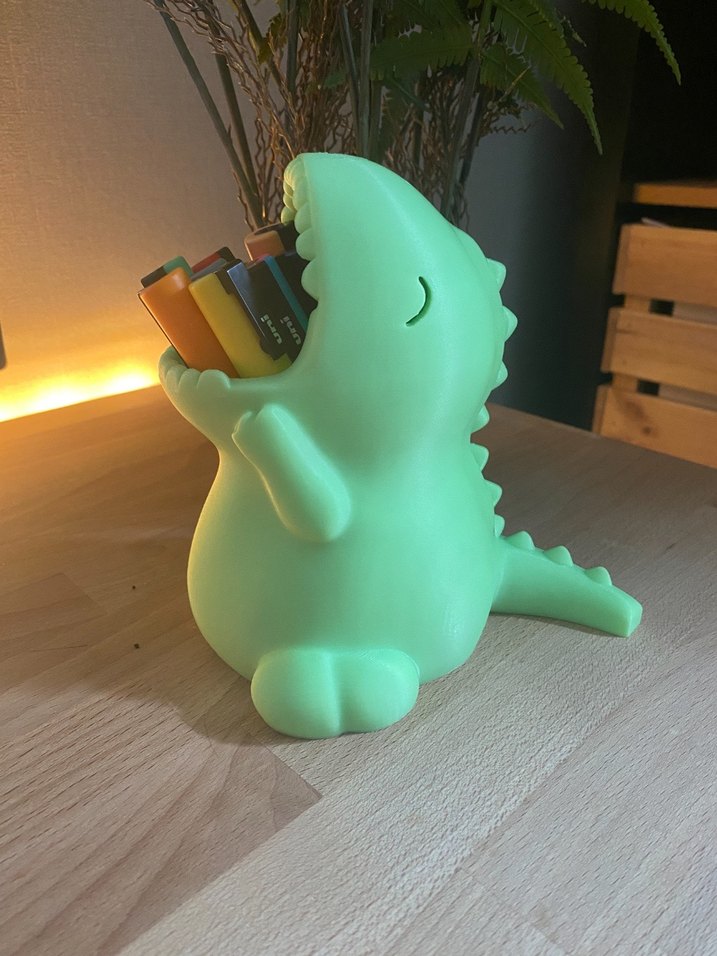 Oyuncak dinozor figürü şeklinde, kalemlik olarak kullanılan açık renkli şirin tasarım. Son fotodaki gibi isme özel yapılır.