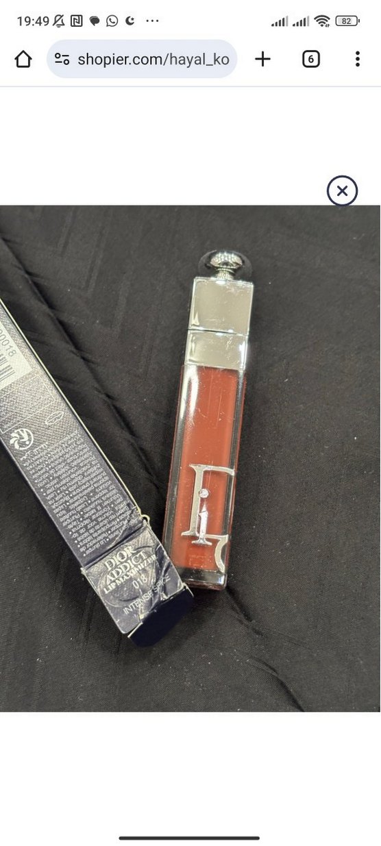 Dior Addict dudak parlatıcısı, koyu bej renkte, parlak bitişli ve gümüş kapaklıdır. Ürün detaylı kutusuyla birlikte gelir.