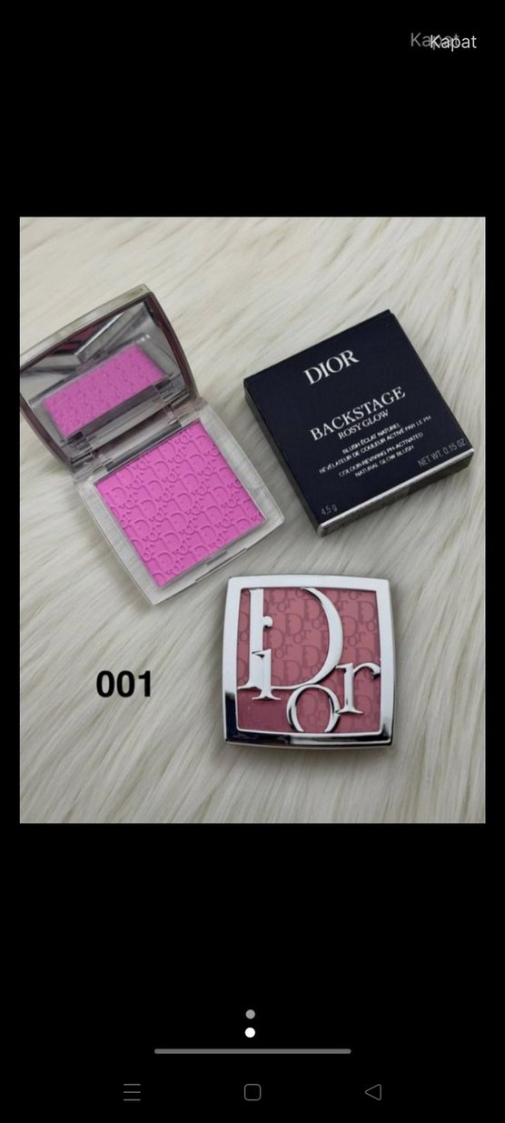 Dior Backstage serisine ait açık pembe tonlarda, hafif parlaklık sağlayan allık. Kabında desen ve ayna bulunur.