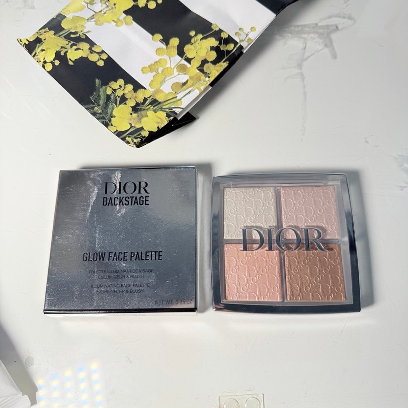 Dior Backstage Glow Yüz Paleti, yüzü aydınlatmak ve doğal bir parlaklık katmak için dört açık bej ton içerir. ✨