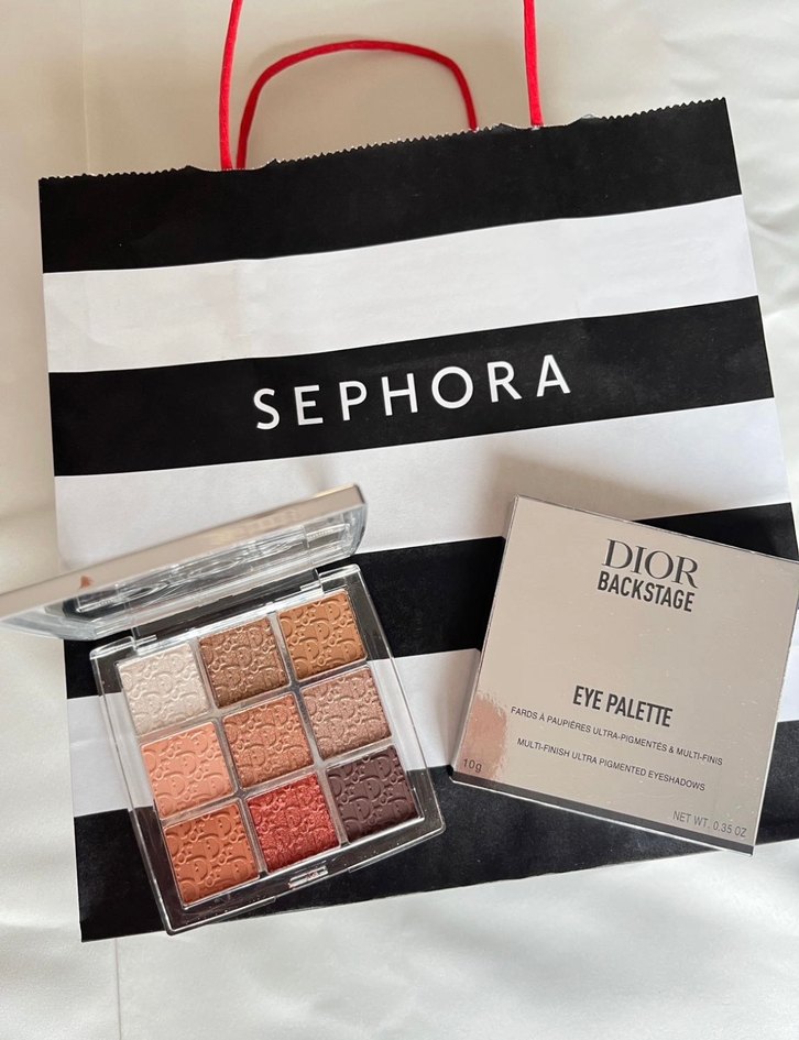 Dior Backstage göz farı paleti, bej ve koyu tonlarda dokuz canlı renkten oluşur. Şeffaf kutu ve kabartmalı desenlere sahiptir.