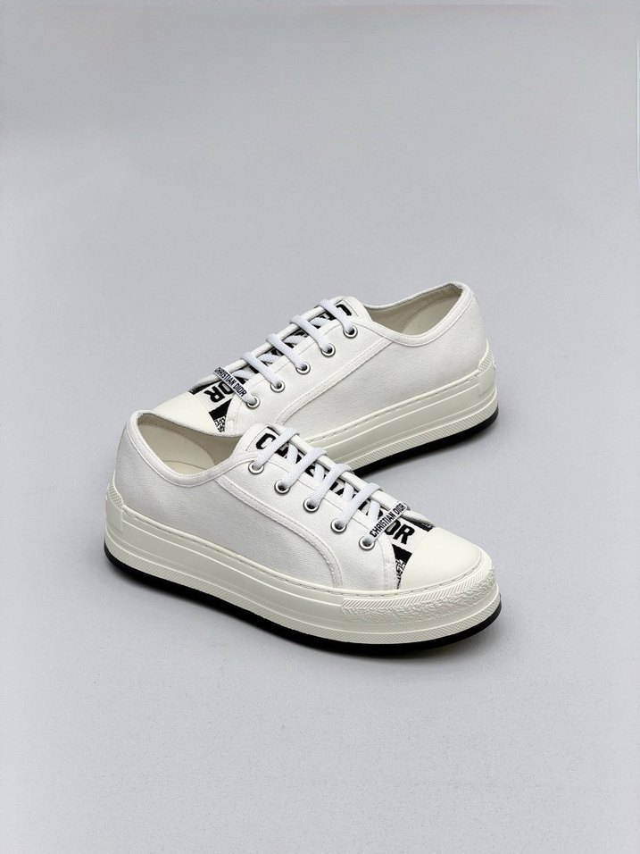 Beyaz platform topuklu, kauçuk tabanlı spor ayakkabı, temiz ve zahmetsiz şıklık sunar. Trendy rahat sokak stili için uygundur. Dior Women Walk N 04 İmported & ithal ürün 37 38 39 40 41 size