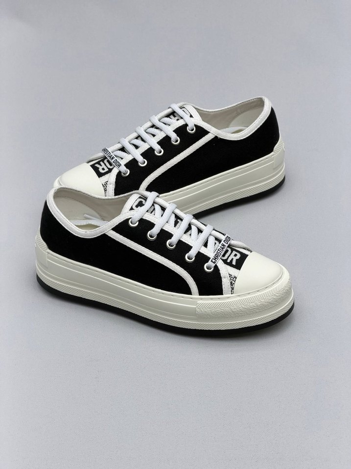 Kadınlar için platform topuklu, elastik detaylı, siyah ve beyaz renklerde baskılı desenli spor ayakkabı. Günlük sokak stiline uygun. Dior Women Walk N 10 İmported & ithal ürün 37 38 39 40 41 size