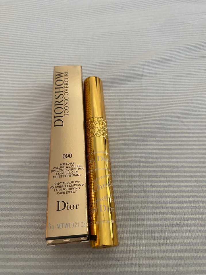 Dior Diorshow maskara, parlak altın renkte, 24 saat hacim ve kıvırma etkisi sağlar. 090 numara, yoğun kirpik tanımı sunar.