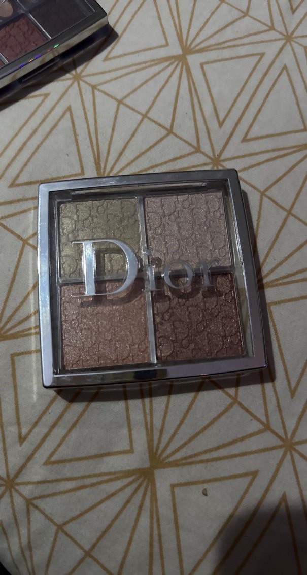 Dior marka, bej ve koyu tonlarda dört rengin bulunduğu göz farı paleti, şeffaf kapak üzerinde Dior logosu ile kompakt tasarıma sahip.