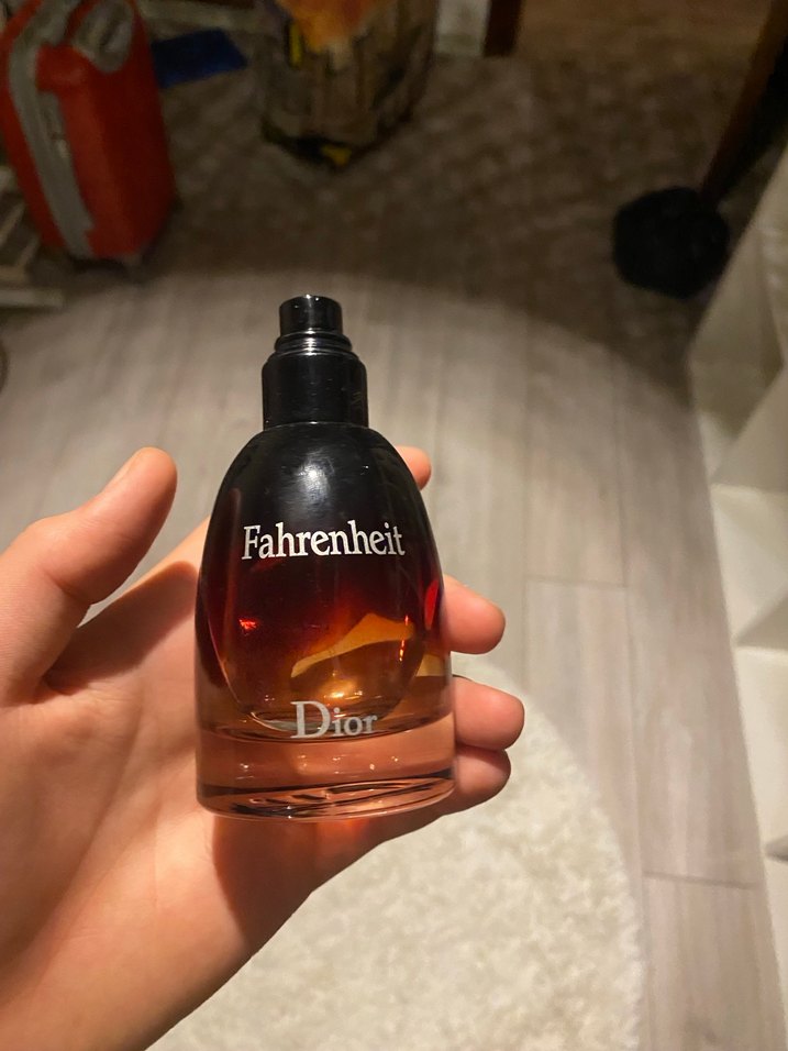 Yüzde 65 dolu Dior Fahrenheit, Parisli karşı kültür stilini yansıtan koyu bej tonlarında erkek parfümüdür. Şık şişesi ve belirgin marka yazısı bulunur.