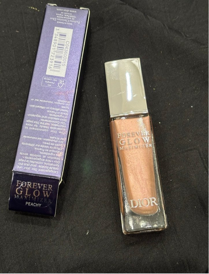 Dior Forever Glow dudak parlatıcısı, parlak bej şeftali tonunda, dudaklara ışıl ışıl bir görünüm sağlar.