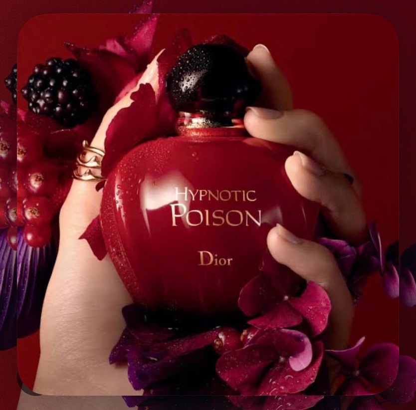 Dior Hypnotic Poison, derin kırmızı şişesi ve büyüleyici çiçeksi kokusuyla kadın parfümü.