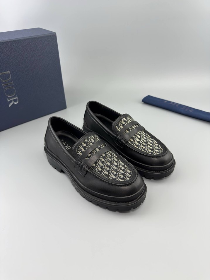 Dior İşlemeli Siyah Platform Loafer