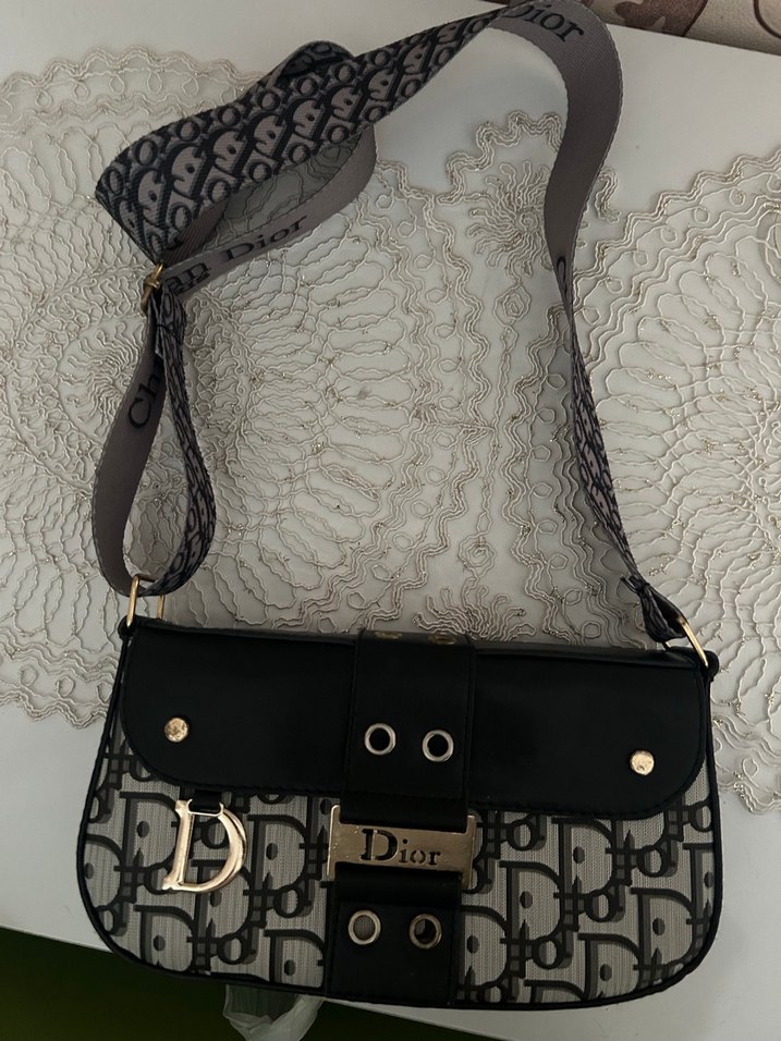 Ayarlanabilir askılı gri detaylı Dior desenli çanta
