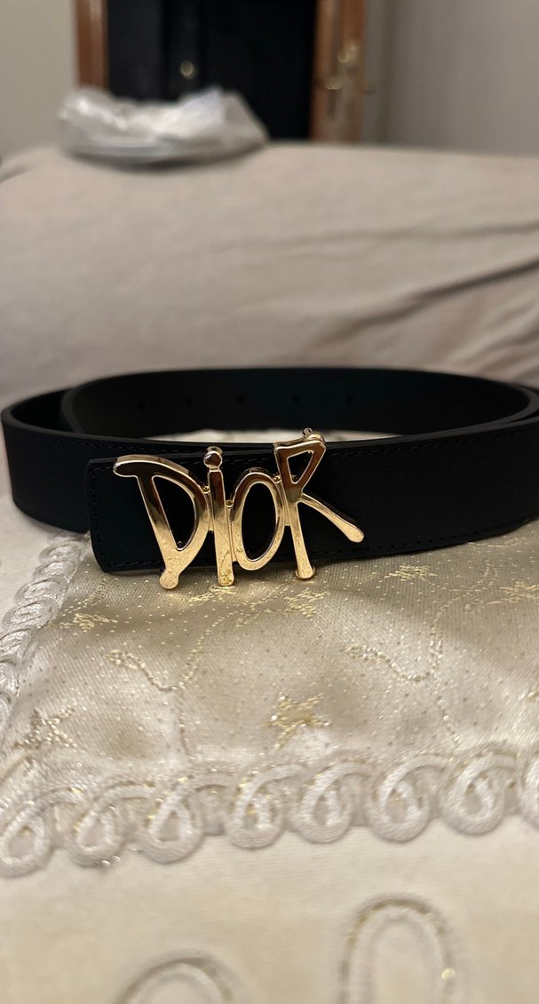 Kadınlar için siyah renk deri kemer, cesur altın 'DIOR' tokasıyla sokak stili ve Paris etkisi sunar. ✨