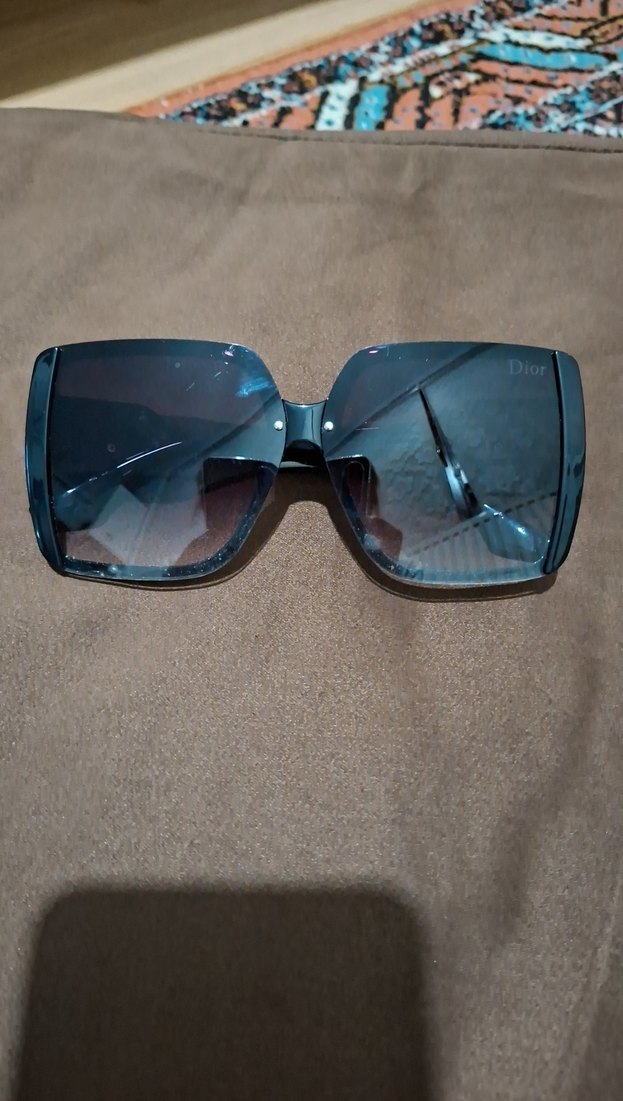 Dior markalı, koyu mavi transparan camlı, minimalist sokak stili kadın güneş gözlüğü.