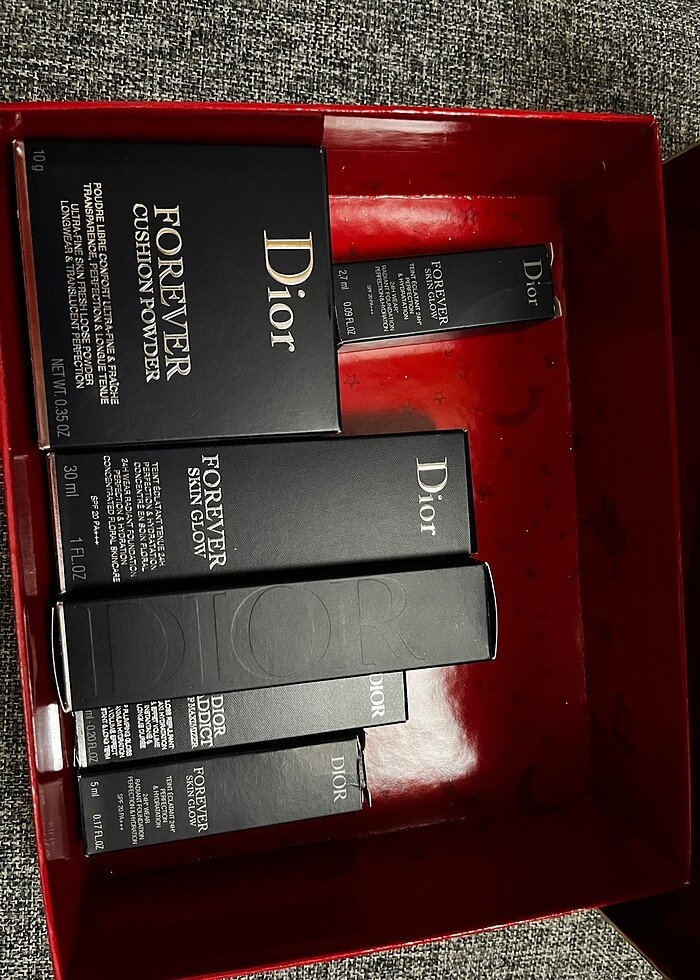 Dior makyaj seti Toz pudra(yeni) Fondöten (renk denendi yeni) Kapatıcı(“) Likit Dolgunlaştırıcı Ruj(“) Mini boy 2 adet fondöten İster tek ister set alabilirsiniz