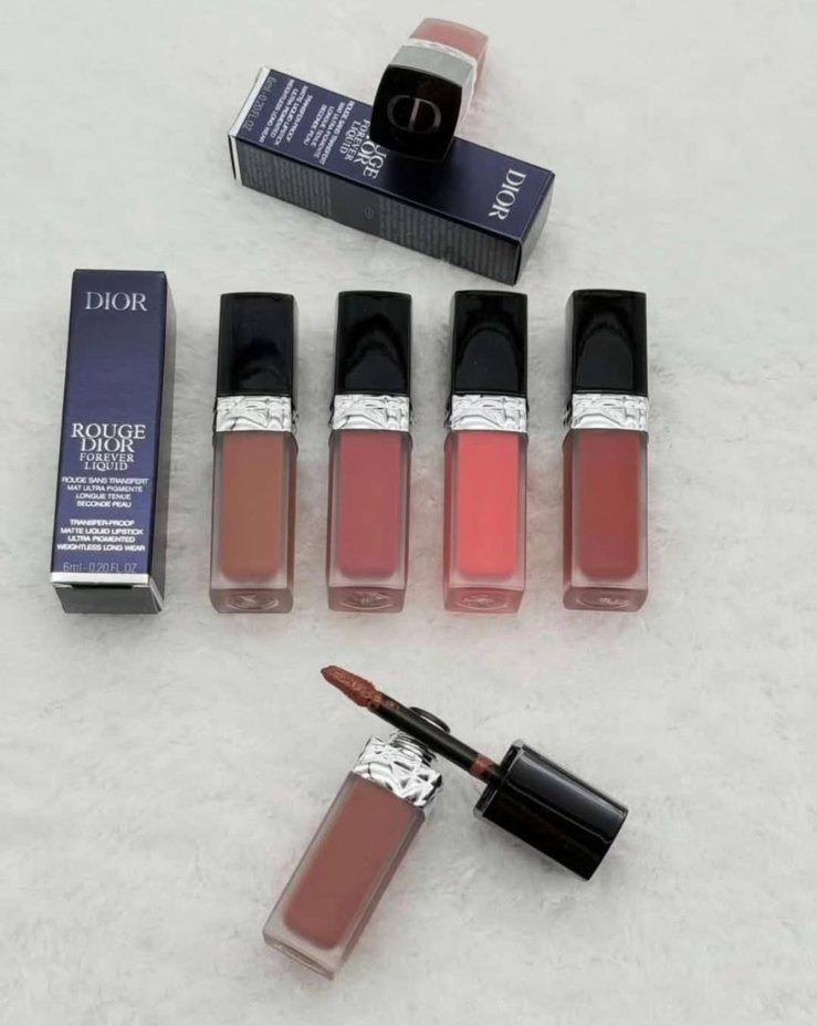 Dior Rouge Dior mat sıvı ruj, koyu bej tonunda, yoğun renk ve pürüzsüz mat bitiş sunar. Uygulayıcı hassas sürüm sağlar.