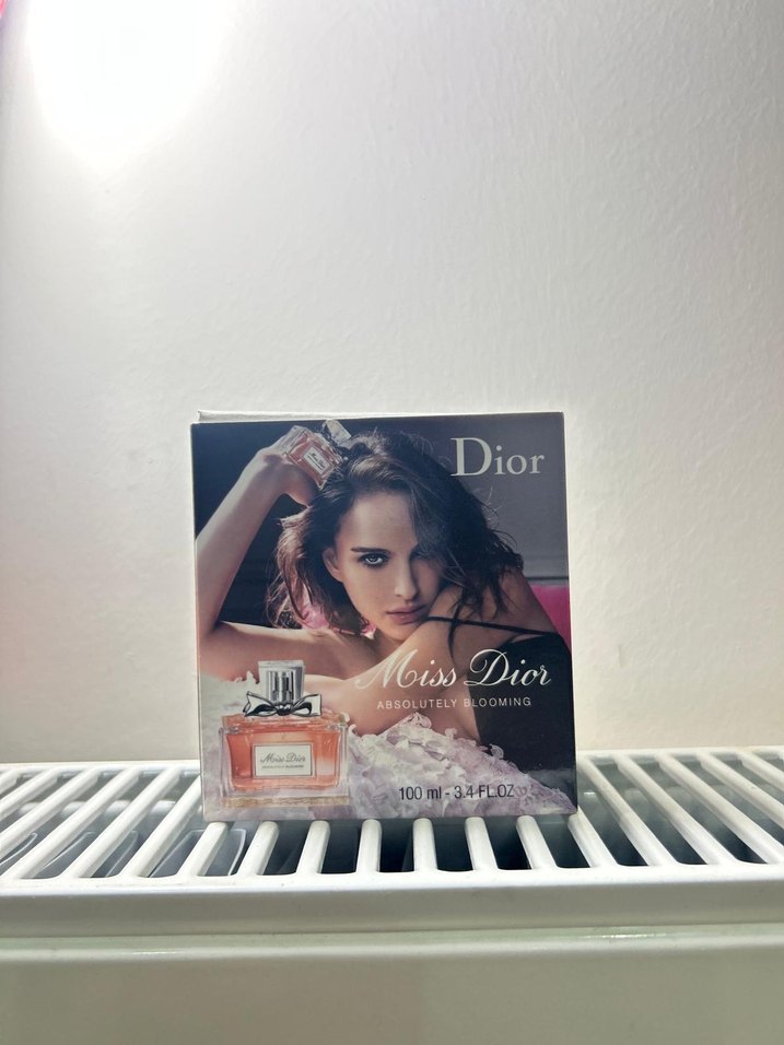 Dior Miss Dior kadın parfümü, çiçeksi kokulu, 100 ml şişede sunulmuştur. Ambalajda model ve marka adı belirgindir.