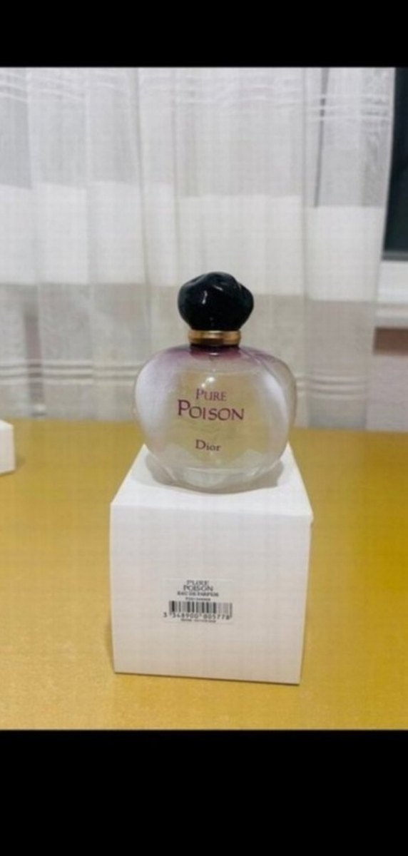 Dior Pure Poison kadın parfümü, siyah kapaklı buzlu cam şişede. Klasik ve zarif bir koku sunar.