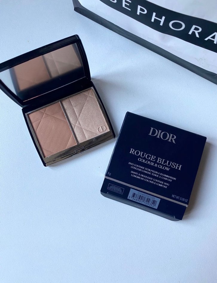 Dior Rouge Blush açık bej tonunda, aynalı kompakt kutuda renk ve ışıltı sağlar. Kutusu ile birlikte. İki renk mevcuttur.