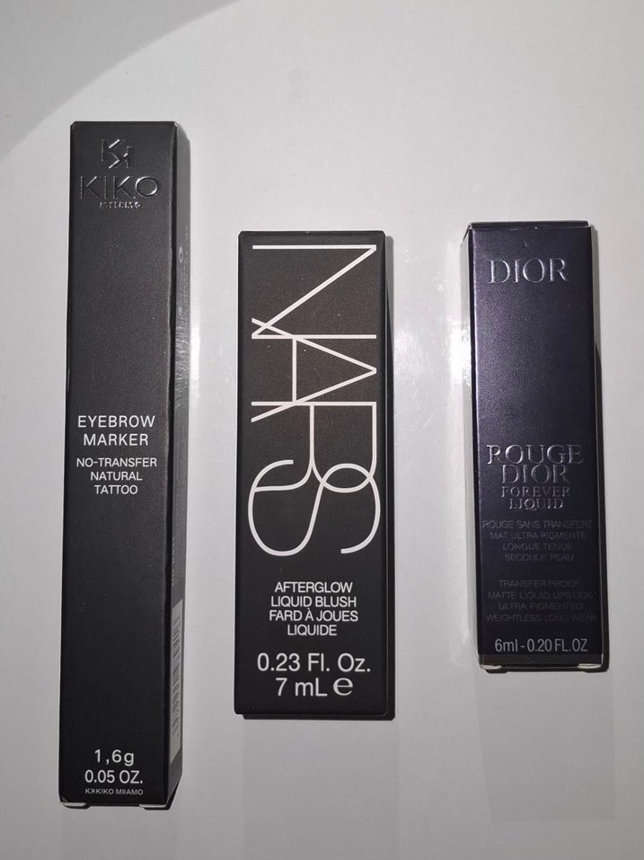 KIKO kaş kalemi, NARS sıvı allık ve Dior ruj içeren3lü boş kozmetik kutuları kolleksiyonerler için