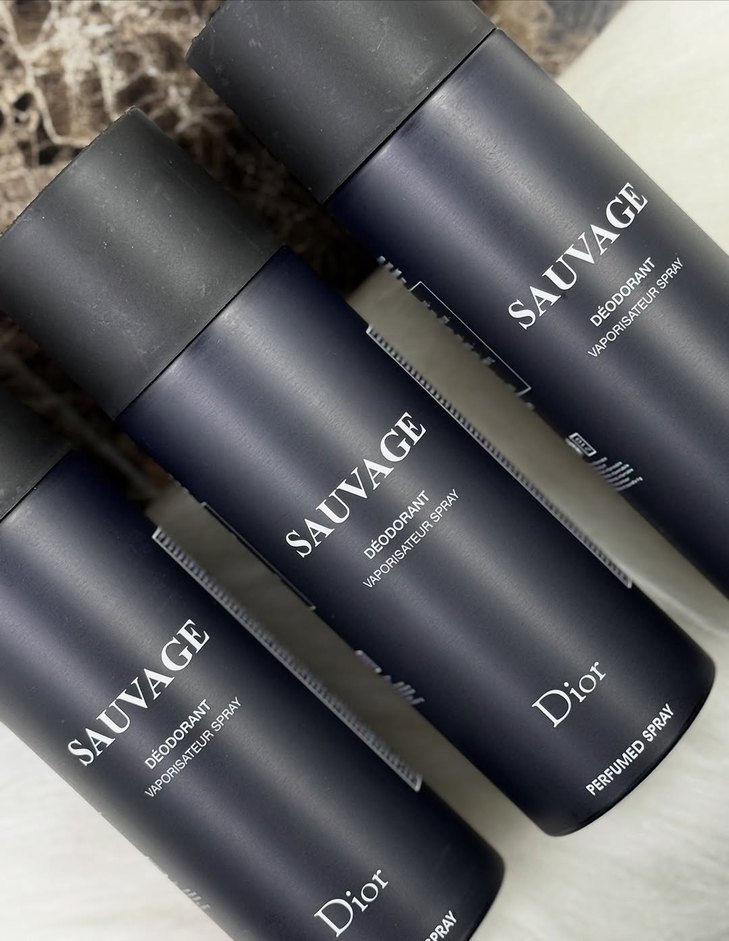 Dior Sauvage erkek deodorant spreyi, lacivert ve gri renklerde, minimalist ve karşı kültür tarzında kokuyla.