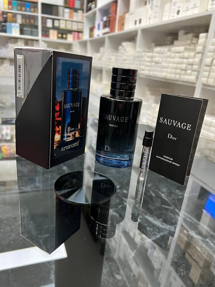 Dior Sauvage erkek parfümü, koyu siyah şişede modern bir stile sahip. Ana parfüm ve kitapçık içerir.