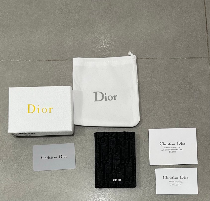 Dior baskılı siyah cüzdan, kağıt malzemeden yapılmış ve cırt cırtlı kapanışa sahip. Çağdaş Paris tarzını yansıtıyor.