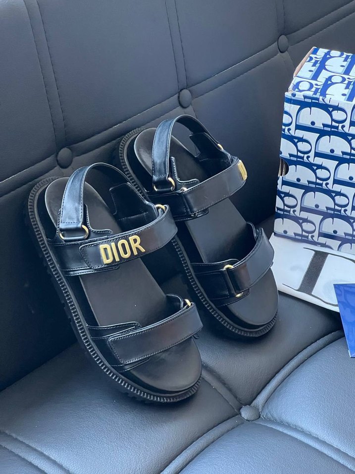 Deri tokalı siyah erkek sandaletler, cesur minimalist tasarım ve DIOR logosu ile günlük sokak stili için uygundur. 36_37_38_39_40