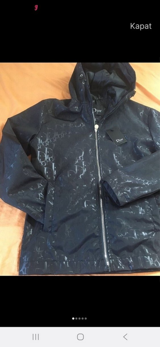 Dior marka siyah kapüşonlu unisex yağmurluk, baskılı kumaştan, fermuarlı ve normal boyda.ithal orjinal urun.genis kaliptir.cook havali ve şık..