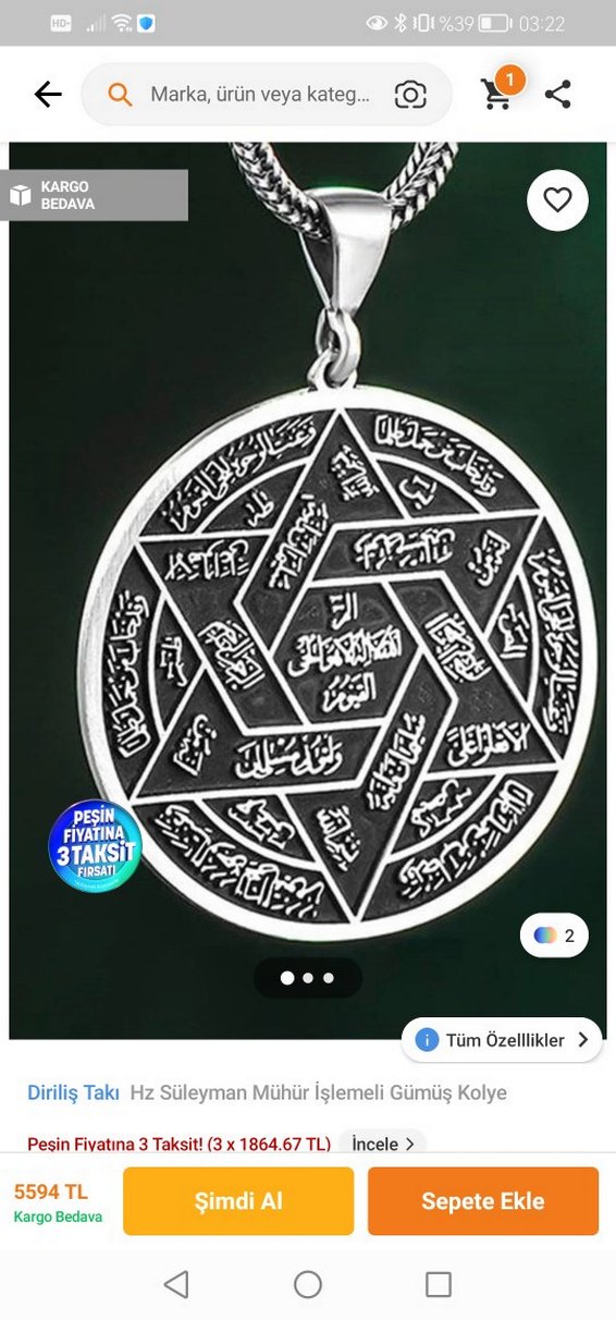 Diriliş takı Süleyman mührü gümüş kolye