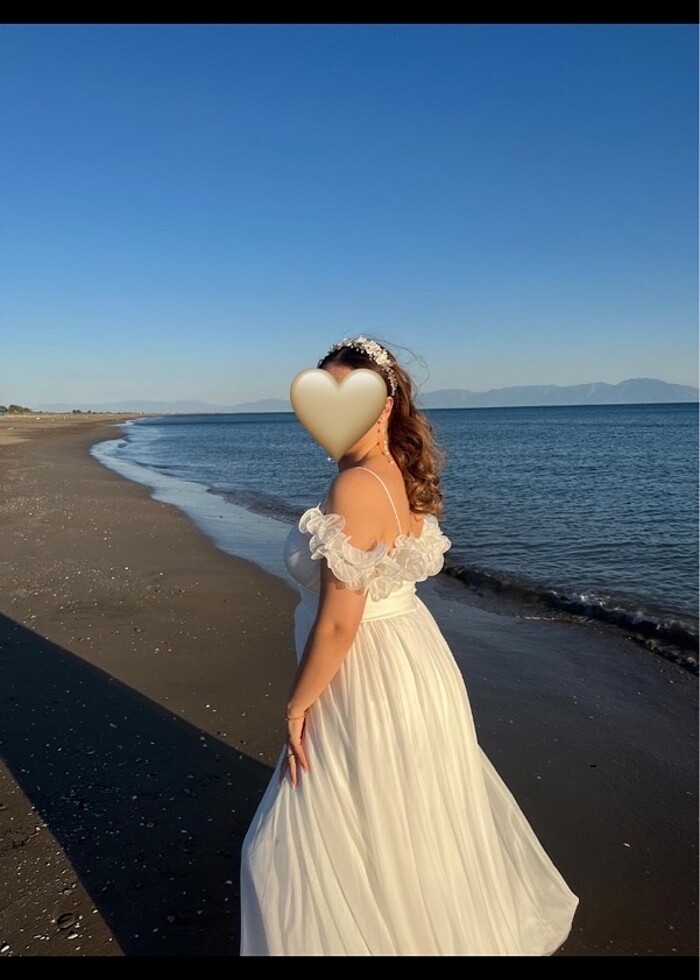 Beyaz kolları fırfırlı şifon dış çekim elbisesi. Çok severek giydim rahat ve uçuş uçuş bir elbiseydi . Temizlemesi yapıldı. Saç aksesuarıyla birlikte gönderilecektir