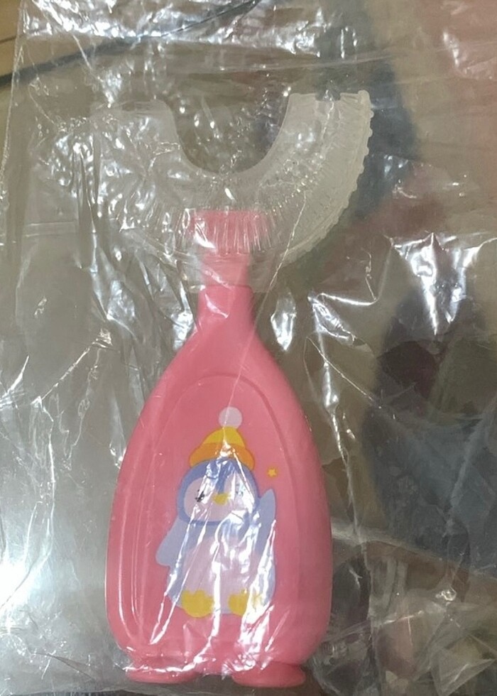 0-6 yaş grubu diş fırçası alıştırma fırçası paketli sıfır ürün. Üç başlığı silikon pembe renk