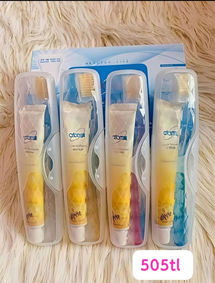 Dört adet diş macunu ve diş fırçası, her biri ayrı plastik kutuda. Diş macunları sarı tasarımlı tüplerde. Fiyat 505 TL. 4 adet kutulu set diş macunu yeşil çay ve propolis özlü dür ( AĞIZ YARALARI) (UÇUK) (MİDE AĞRISINA) (YANIKLARA) (BEBEKLERİN DİŞ ÇİKARMA DÖNEMİNDE KULLANABİLİRSİNİZ) 1350 altı 100 tl kargo ücreti dir