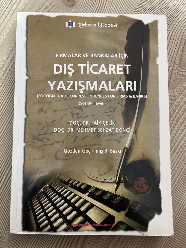 Firmalar ve bankalar için dış ticaret yazışmalarını içeren, sözlük ilaveli bir kitap. Doç. Dr. Mehmet Behzat Ekinci ve Doç. Dr. Faik Çelik tarafından hazırlanmıştır. Türkçe - İngilizce içerikli