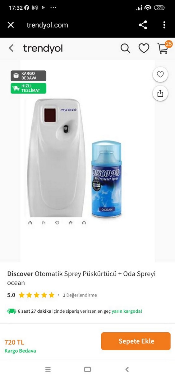 Otomatik sprey püskürtücü ve okyanus kokulu oda spreyi ile ferah bir ortam sağlar. sorunsuz çalışıyor