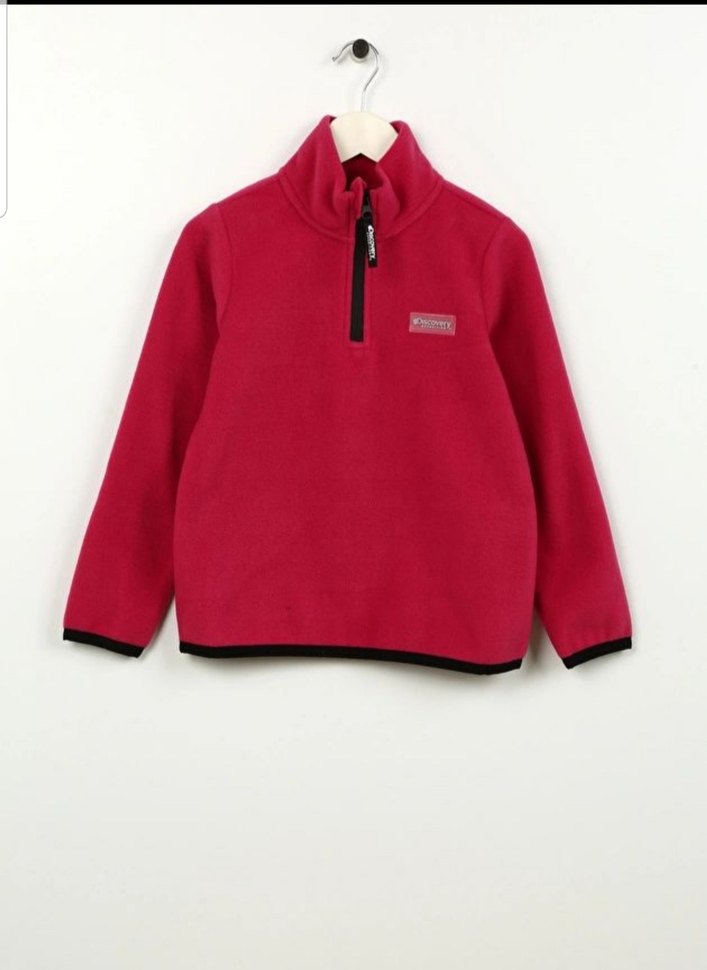 Yarım fermuarlı, yüksek yakalı ve uzun kollu, kırmızı renkte, bol kesim, yumuşak ve sıcak dokulu çocuk polar. MARKA: DİSCOVERY EXPEDİTİON. SIFIR, ORJİNAL, ETİKETLİ ÜRÜNDÜR. BEDEN : 7-8 YAŞ. RENK : PEMBE