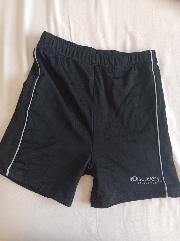 Discovery markalı, elastik bel bantlı siyah erkek çocuk deniz şortu, yanlarda ince şerit detaylıdır. Rahat kumaştan üretilmiştir. 10 yaş erkek çocuk içindir. dar kalıp bir şort. internetten satın almıştım, oğlum rahat edemediği için satıyorum. sadece birkaç kez giymiştir.