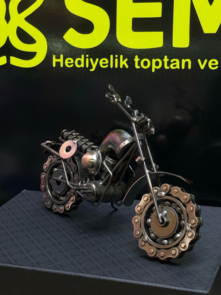 Güçlü, sert ve sıra dışı! Dişli teker detaylarıyla öne çıkan bu metal motosiklet, endüstriyel dekorun yıldızıdır. El yapımı görünümü ve ağır metal hissi sayesinde koleksiyonluk bir parçadır. Erkek ofisleri, atölyeler, kafeler ve modern dekor sevenler için çok satılan model olmaya aday. Uzunluk: 25,5 cm Yükseklik: 13 cm Genişlik: 10 cm Daha faklı modeller için sayfamıza bakabilirsiniz •~SEMA HEDİYELİK~•