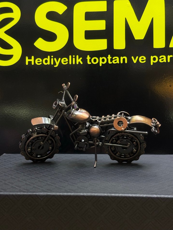 Güçlü, sert ve sıra dışı! Dişli teker detaylarıyla öne çıkan bu metal motosiklet, endüstriyel dekorun yıldızıdır. El yapımı görünümü ve ağır metal hissi sayesinde koleksiyonluk bir parçadır. Erkek ofisleri, atölyeler, kafeler ve modern dekor sevenler için çok satılan model olmaya aday. Uzunluk: 22 cm Yükseklik: 10 cm Genişlik: 6.5 cm Diğer modeller için sayfamıza bakabilirsiniz •~SEMA HEDİYELİK~•