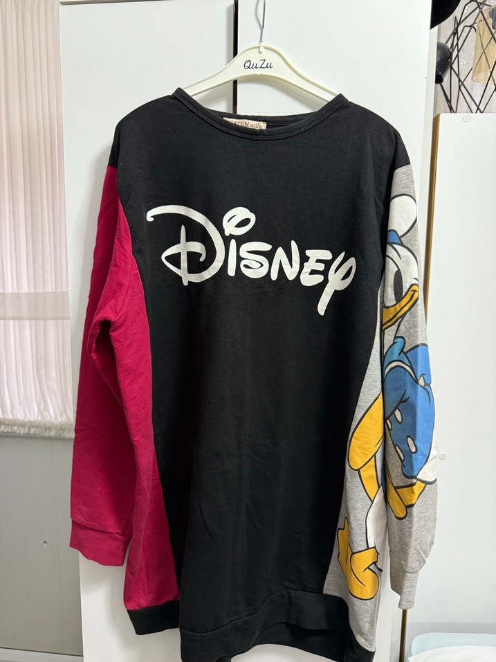 Uzun kesim, bol kesim ve uzun kollu pamuklu sweatshirt. Örme dokusu ve renkli Disney baskıları ile günlük rahat kullanım için uygun.