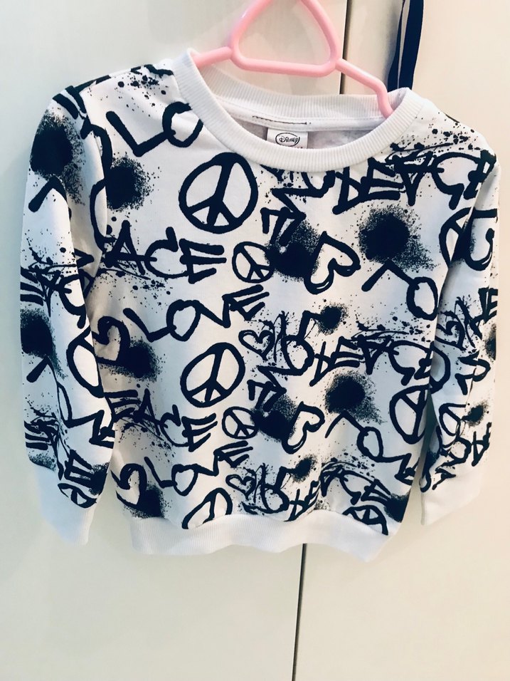 Beyaz pamuklu sweatshirt, renkli baskılı grafiti desenleriyle, yuvarlak yaka özellikleriyle rahat sokak tarzı için uygun. Bir kezgiliydi yıkandı. Beden uymuyor.