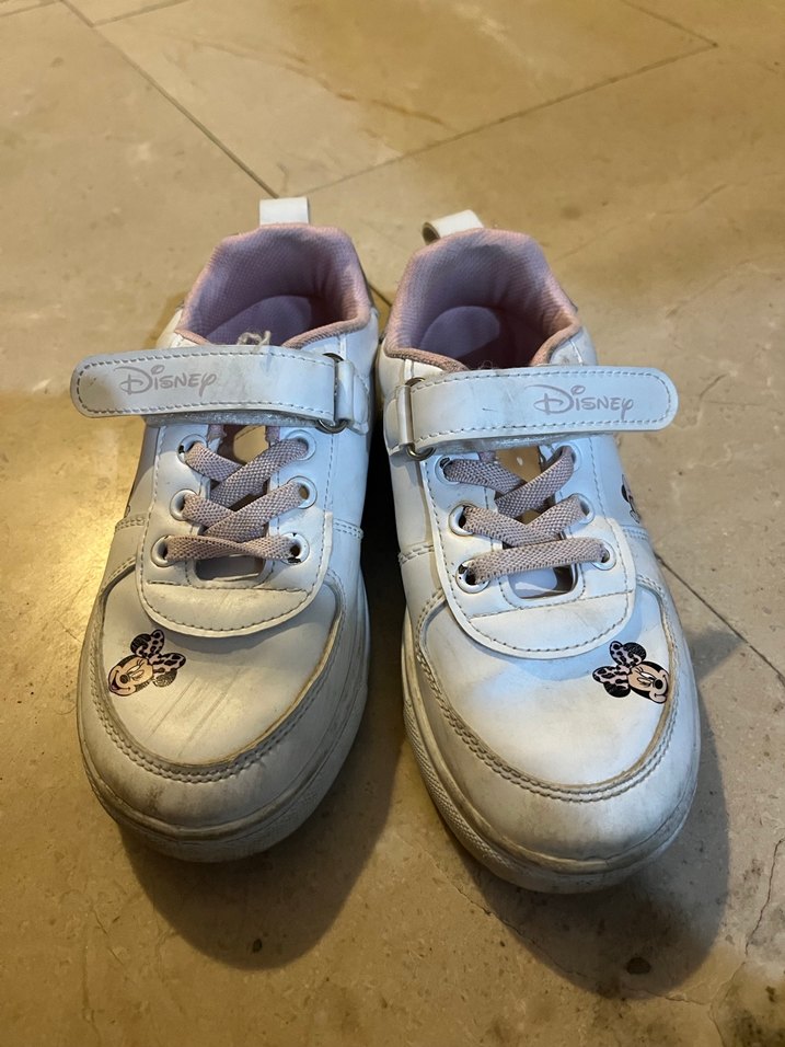 Disney markalı beyaz kız çocuk spor ayakkabısı, pastel nakışlı ve cırt cırtlıdır. Kauçuk tabanlı, günlük sokak giyimine uygundur.