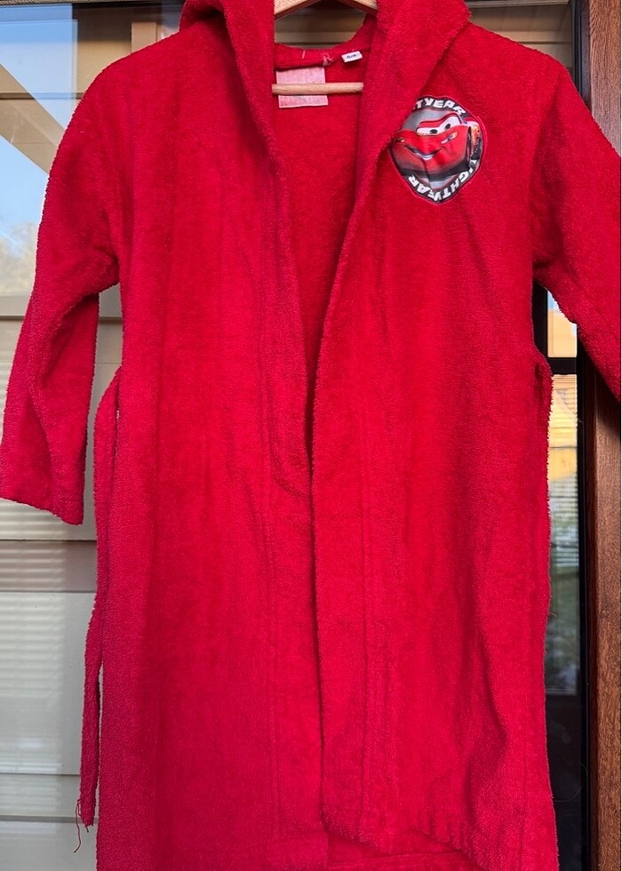 Az kullanılmış 6-8 yaş kırmızı çocuk bornozu.
