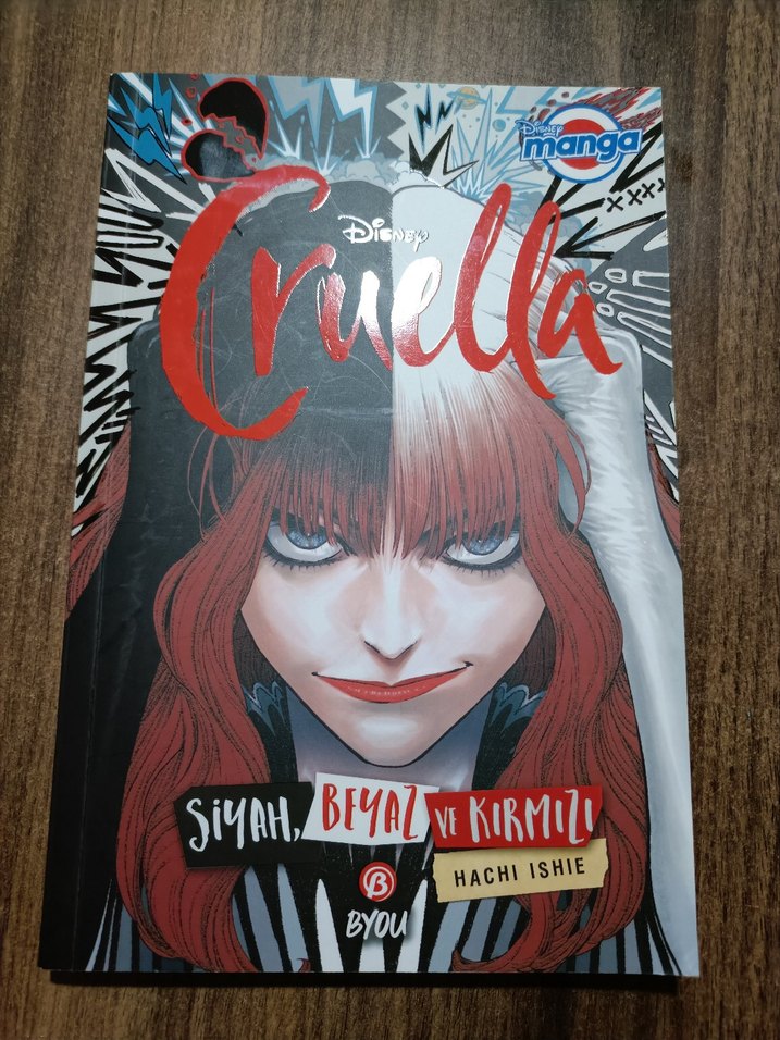 Disney Cruella çizgi romanı, Siyah, Beyaz ve Kırmızı renklerle dikkat çeken kapak ve Hachi Ishie ile Byou'nun hikayesiyle sunuluyor.