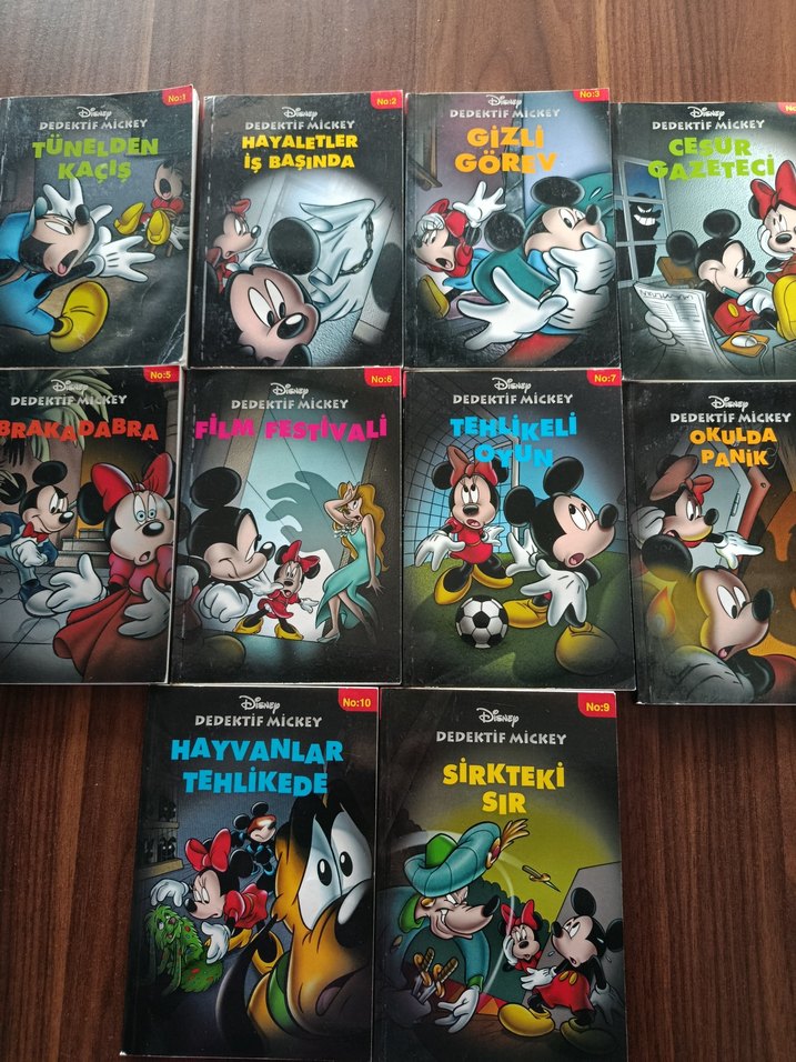 Hayvanlar, sırlar ve gizemlerle dolu 10 Disney Dedektif Mickey çocuk kitabı seti.