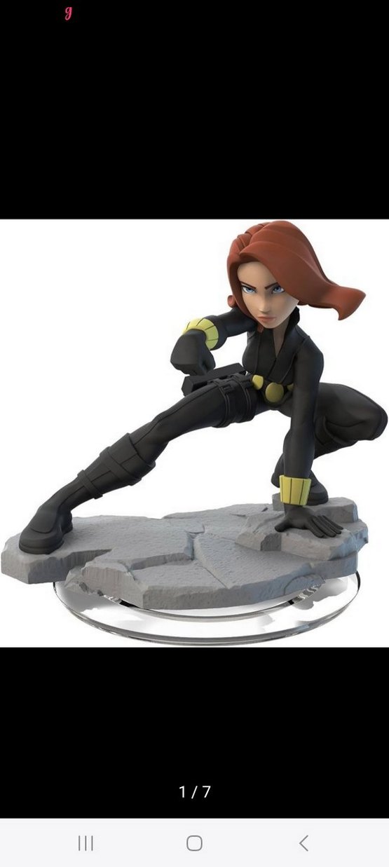 Siyah renkli kadın aksiyon figürü, dinamik pozda ve detaylı sarı kostüm vurgularıyla taş görünümlü tabanda yer alır.