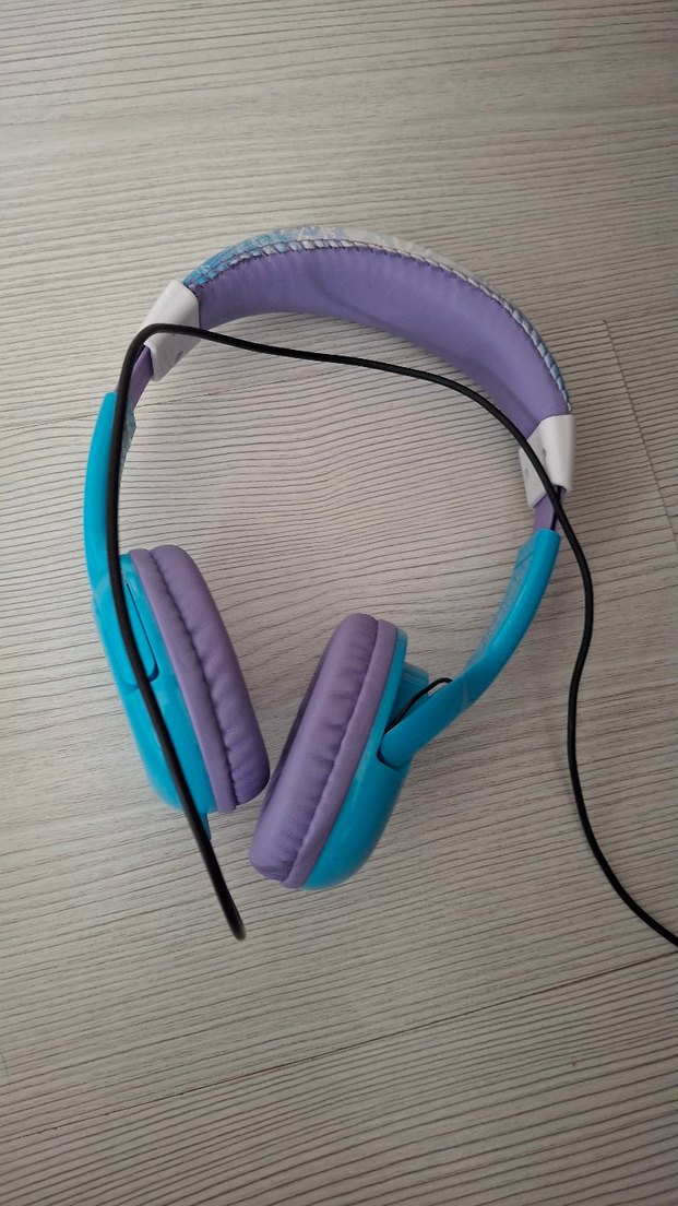 Mor ve mavi renklerin kullanıldığı, yumuşak pedli ve rahat bir kulaklık modeli .sorunsuzdur