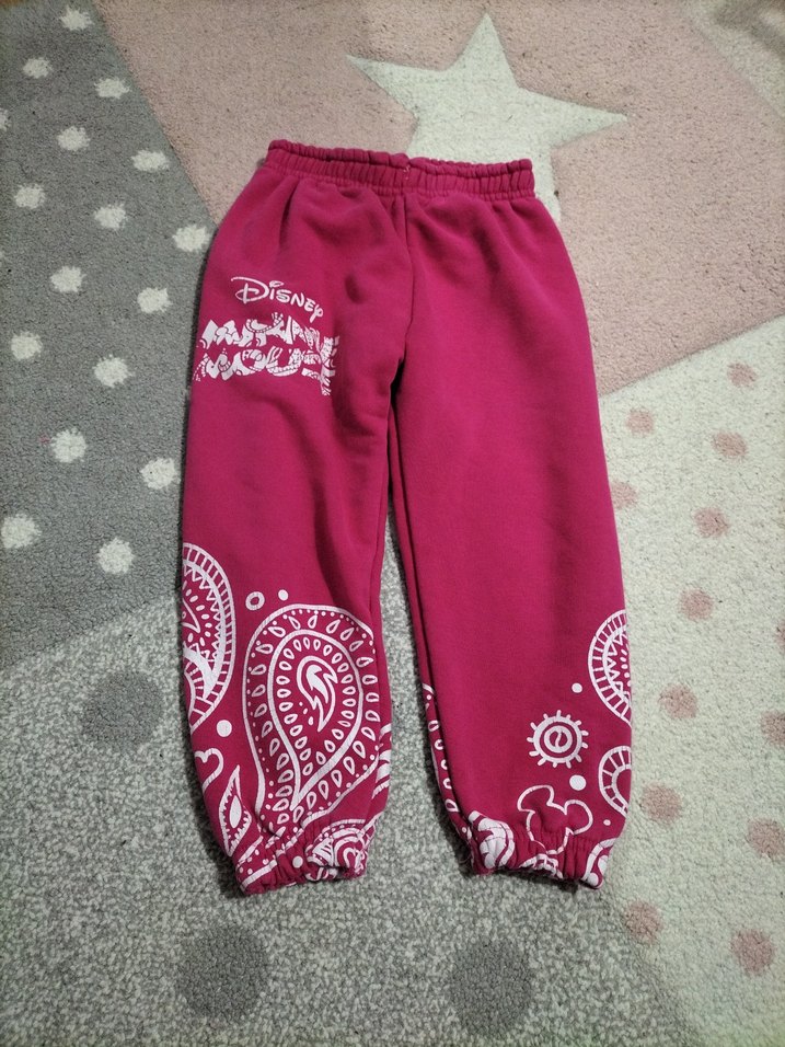 Rahat kesim, pembe polar kumaştan, renkli paisley ve Minnie Mouse desenli kız eşofman altı. Lastikli bel ve paçalar konfor sağlar. 3 4 yaşa uygun kalın esofn alt