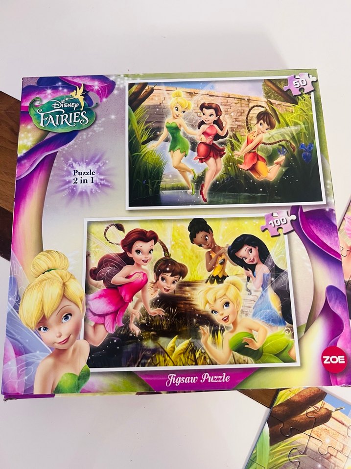 Renkli Disney Periler temalı 50 ve 100 parçalı 2'si 1 arada çocuk puzzle seti. Sadece bir kere oynandı. Eksik parçası yoktur. İade yoktur.