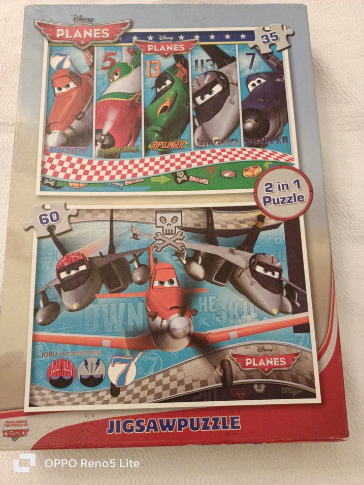 Disney Planes temalı, 35 ve 60 parçalı iki puzzle içeren, renkli ve canlı çocuk yapbozu. ve Ravenbursgen Cars 3*39 puzzle
